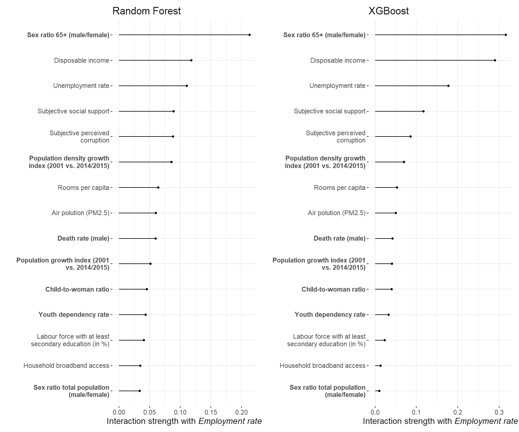 int_emp_robustness <- plot_int_emp_rf + ggtitle("Random Forest") + plot_int_emp_xgb